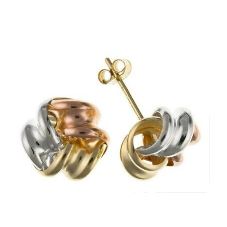 9ct Three Colour Knot Stud Earrings Solid Yellow Rose White Gold 7mm Studs