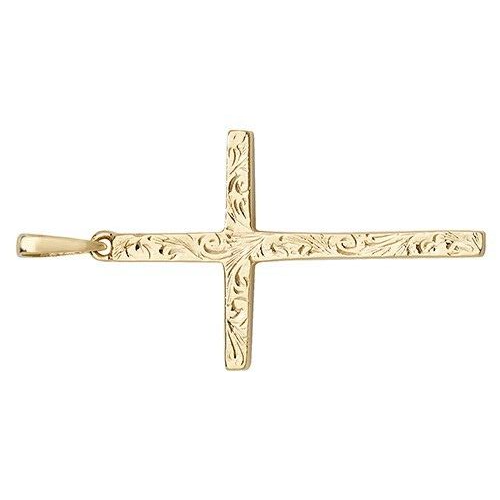 9ct Yellow Gold Patterned Cross Pendant Large 36 x 23mm Christianity Christening