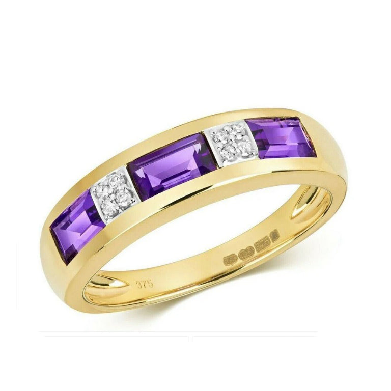 9ct Yellow Gold Real Amethyst and Diamond Eternity Ring Band Anniversary