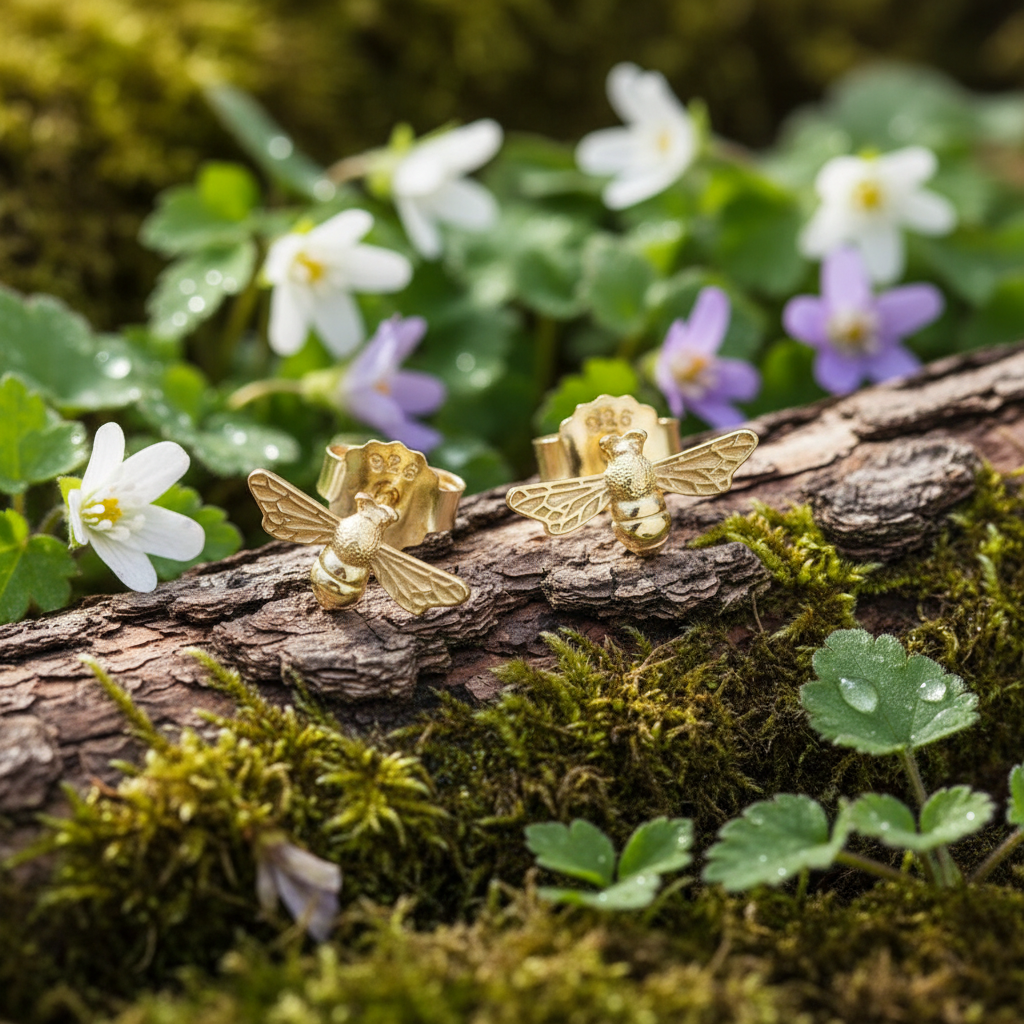 These exquisite bumble bee stud earrings combine timeless elegance with meticulous craftsmanship. Each pair features 18ct yellow gold detailing set upon solid .925 sterling silver, creating a striking two-tone effect that captures light beautifully. Handmade to order, these earrings showcase exceptional attention to detail, with each bee rendered in lifelike proportions measuring approximately 12 x 6mm. The 925 hallmark guarantees authentic sterling silver quality, ensuring durability and hypoallergenic properties ideal for sensitive ears. Perfect for nature enthusiasts and those who appreciate fine jewellery, these studs transition seamlessly from everyday wear to special occasions. Presented in premium packaging, they arrive ready to gift or treasure as a personal indulgence.