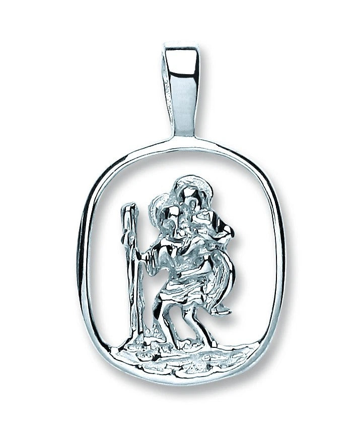Discover the elegance of our Sterling silver St Christopher pendant, beautifully crafted with a cut-out design that speaks to both style and devotion. This pendant showcases St Christopher, the patron saint of travellers, making it a perfect gift for anyone on the move.