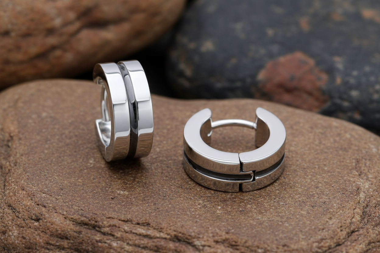 Advance your style with these distinctive earrings that exude edgy elegance. Crafted in stainless steel, the black enamel centre adds individuality to your look. To complete your look why not stack with other Fred Bennett earrings or pair with a bracelet to customise your style!