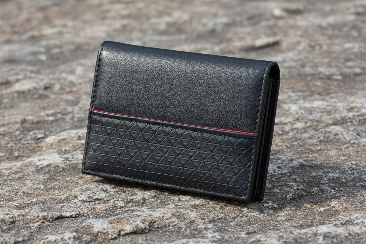 This card holder is crafted in recycled black leather with red stitch detailing and can be personalised on the plain leather portion using our laser engraving service! Create the perfect gift with the freedom to fully personalise your card holder with text, handwriting or even a cute pen drawing from the kids to cherish forever.