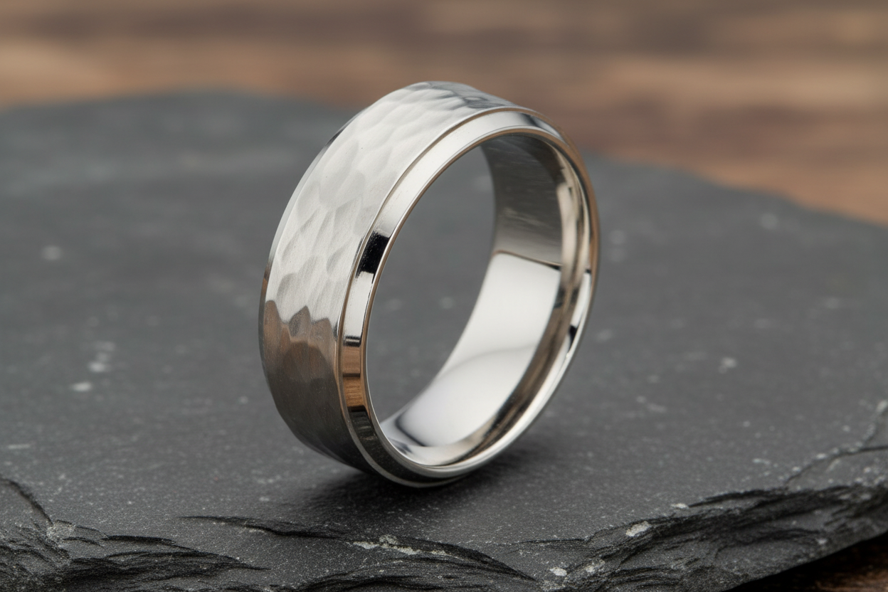 Fred Bennett Hammer Textured Ring Brushed and Polished Band R3414