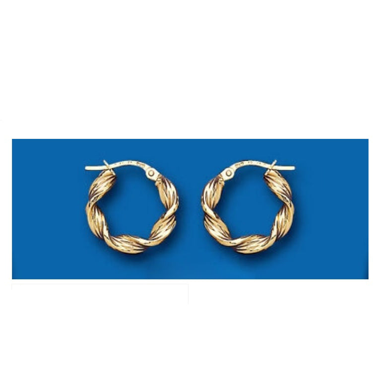 Hoop Earrings Yellow Gold Creole Hoops Twist Design 16mm Hallmarked