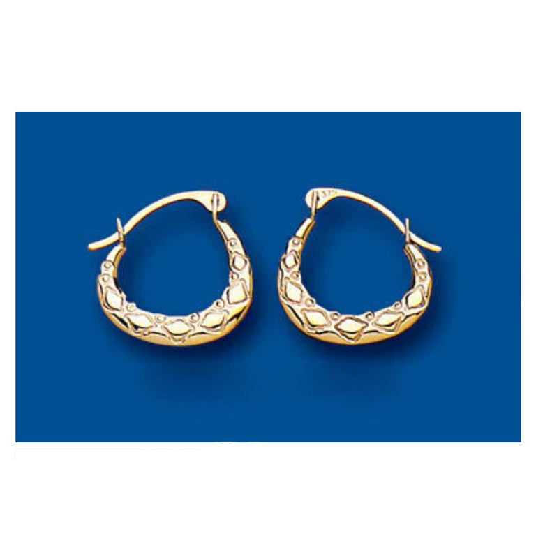 Hoop Earrings Yellow Gold Creole Patterned 13mm Hallmarked