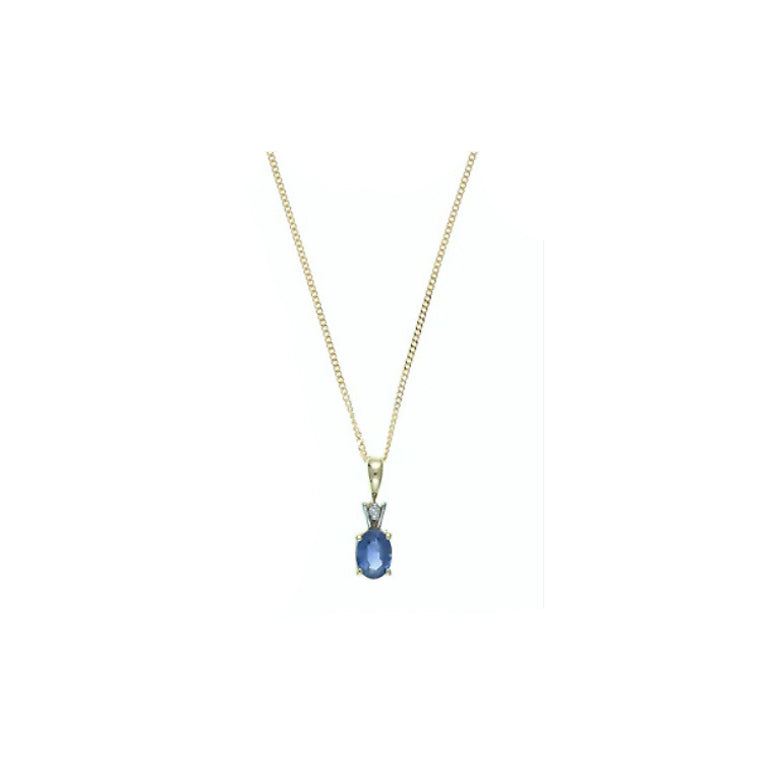 Kanchan Sapphire Solitaire and Diamond Pendant Solid 9ct Yellow Gold 16-18"