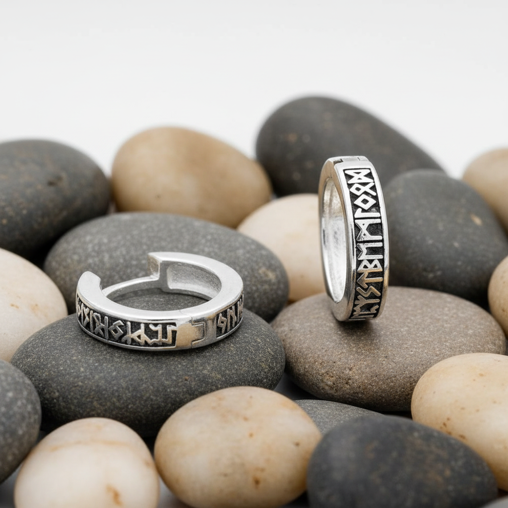 Men's Oxidised Ethnic Rune Huggie Earring Single Earring 925 Hallmark