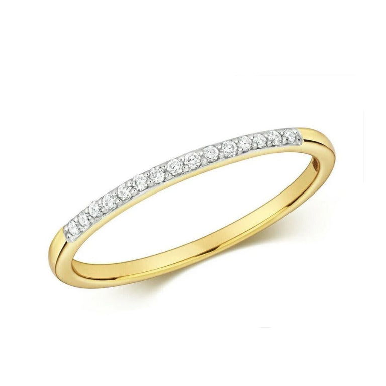 Elegant and glamorous, this eternity ring showcases the natural beauty of diamonds with dazzling results. Thanks to the exquisite quality of the G/Si round cut diamonds it instantly catches the eye wherever you go. This one features 0.07CT of diamonds. Featuring a luxurious 9K yellow gold claw setting for a flawless finish.