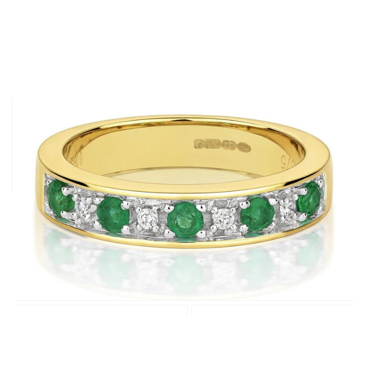 Real Emerald and Diamond Eternity Ring 9ct Yellow Gold 4mm Band Anniversary