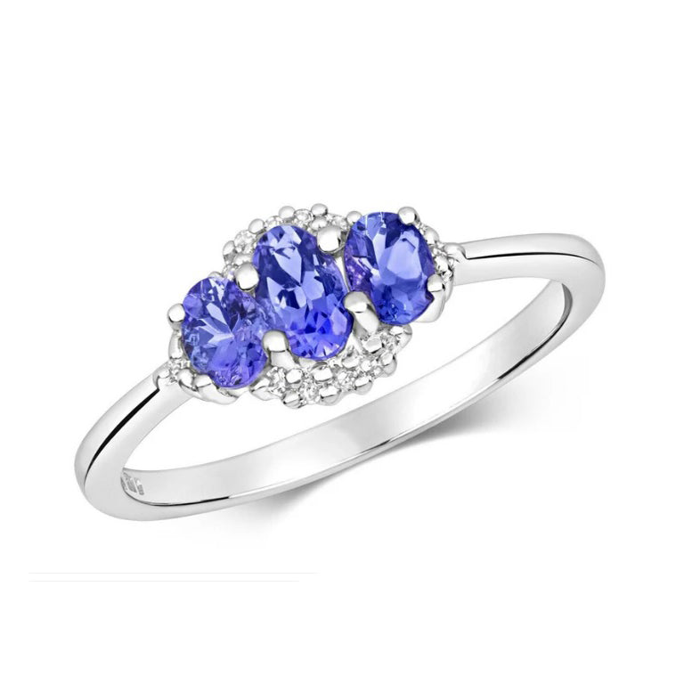 9k White Gold Diamond & Tanzanite Ring - British Made - hallmarked