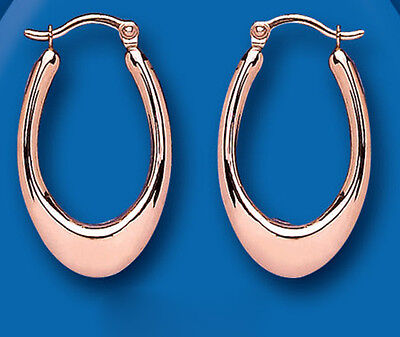 Rose Gold Hoop Earrings Oval Red Gold Hoops Creole Hallmarked