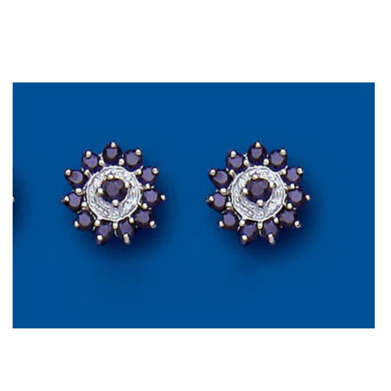 Sapphire Earrings Diamond Stud Sterling Silver Studs Natural Sapphire & Diamond