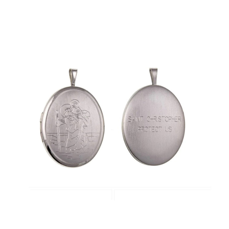 St Christopher Oval Locket Solid Sterling Silver 925 Hallmark 26 x 20mm