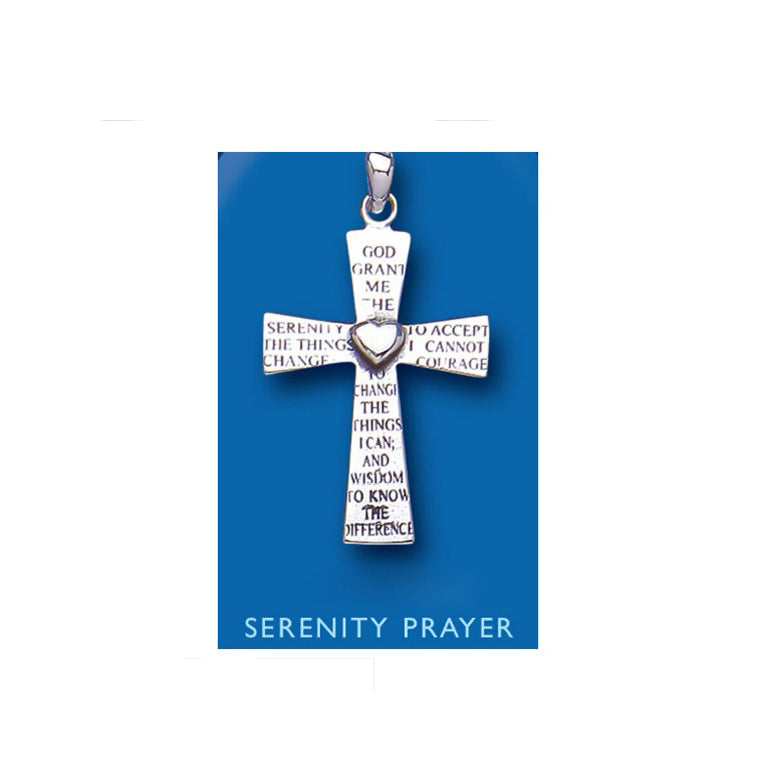 Sterling Silver Serenity Prayer Cross Pendant 925 Hallmark 30 x 20mm
