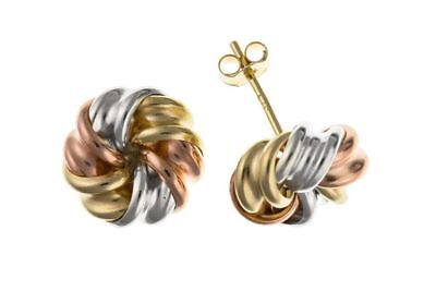 Three Colour Gold Knot Stud Earrings 10mm 9 Carat Yellow Rose White Gold Studs